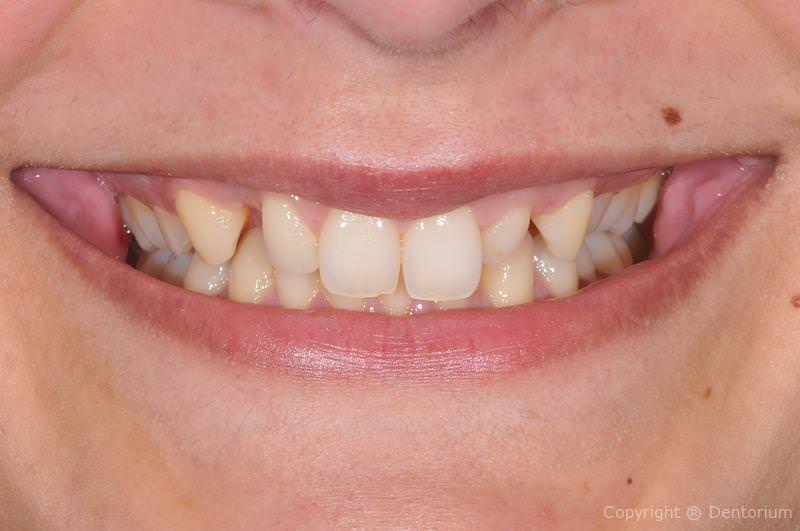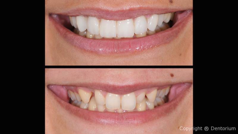 Prima del trattamento finale è stato necessario partire con lo sbiancamento dei denti, la funzione e la simmetria realizzate poi con le faccette in ceramica e le corone ceramica (ceramica integrale).