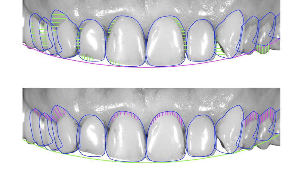 Il caso e le fasi di lovoro sono pianificati con DSD – Digital Smile Design. (wax up e mock up video sotto mostra la prova del lavoro finale prima dell’inizio della terapia).