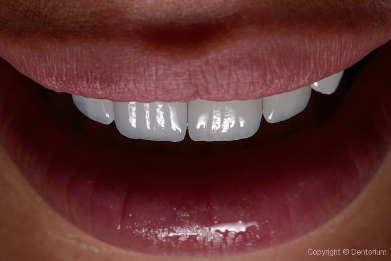 L’armonia della estetica rosa (le linee gengivale) e´ stata realizzata con la gengivoplastica.