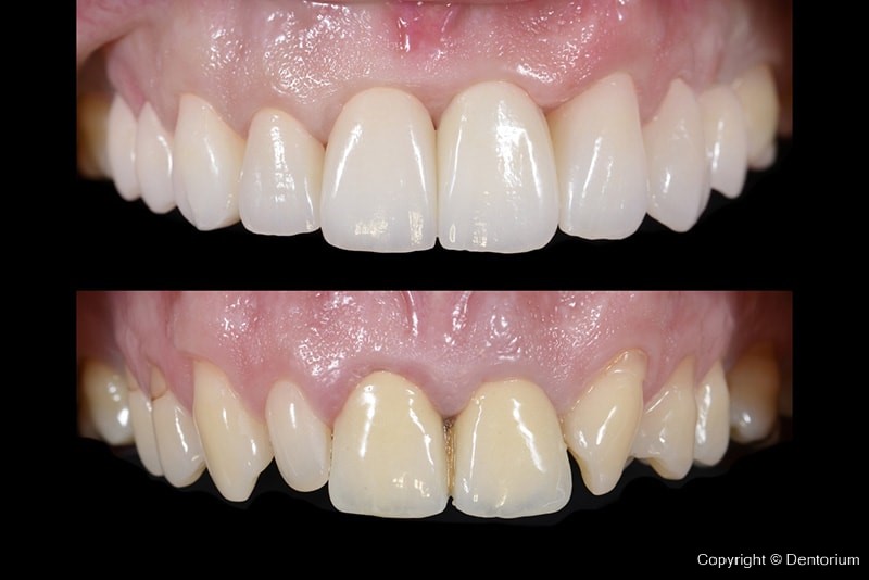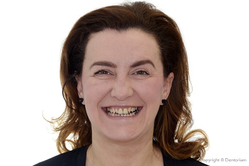 Con la perdita dei denti nella zona estetica (parte anteriore) la sfida maggiore è il mantenimento dei tessuti molli, cioè la gengiva circostante. Per motivi di limitati risorse del tessuto, un piano preciso e prevedibile è di fondamentale importanza. Di grande importanza, nel caso di Suzana, era stabilire una correta funzione, con la quale come consequenza abbiamo ricevuto l’estetica di sorriso.